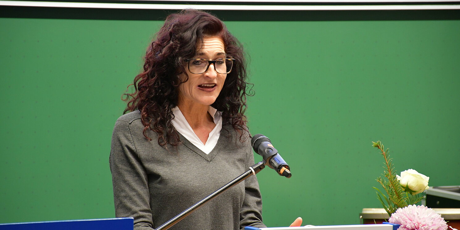 Studiendekanin Prof. Dr. Manuela Brandstetter begrüßte rund 100 Gäste im Hörsaal D 001, darunter Vertreterinnen und Vertreter der Barmherzigen Brüder, Hochschulangehörige, Studierende sowie Freundinnen, Freunde und Familien der ausgezeichneten Absolventinnen und Absolventen.