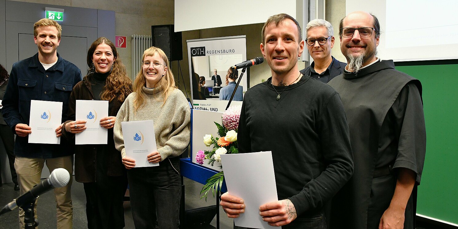 Für diese herausragende Leistung wurden die Absolventinnen und Absolventen der Fakultät Sozial- und Gesundheitswissenschaften der OTH Regensburg am Donnerstag, 13. November 2025, mit dem Förderpreis der Barmherzigen Brüder ausgezeichnet. Die Preise, dotiert mit insgesamt 6000 Euro, würdigen wissenschaftliche Arbeiten, die zentrale gesellschaftliche Herausforderungen präzise analysieren und Impulse für eine solidarische und menschenorientierte Zukunft setzen.
