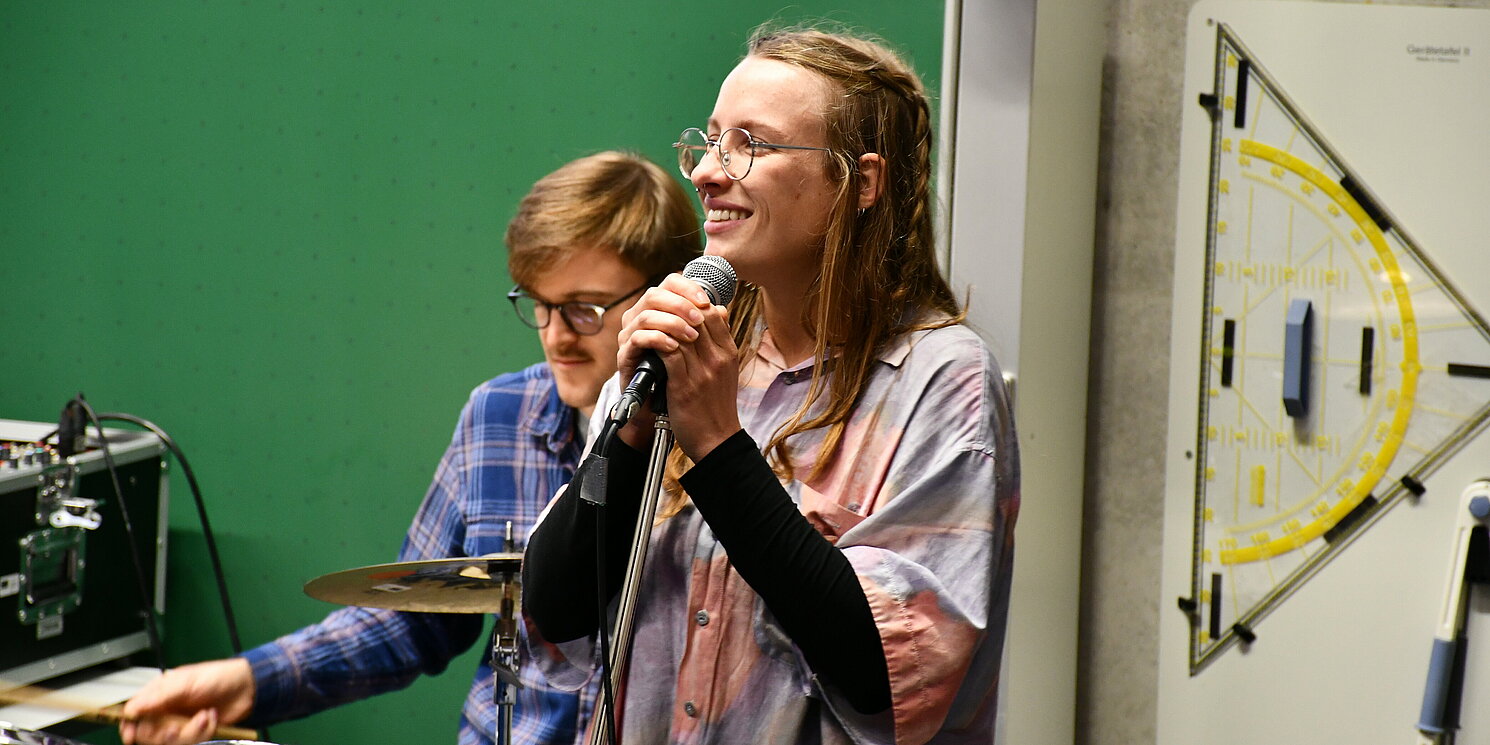 Für den feierlichen musikalischen Rahmen sorgte eine Studierendenband des Bachelorstudiengangs Musik- und bewegungsorientierte Soziale Arbeit mit Nerea Freichel Nieto (Gesang, Bass), Caroline Davia (Gesang, Percussion), Hannes Tischer (Schlagzeug) und Lorenz Breuer (Gesang, Gitarre, Saxofon).