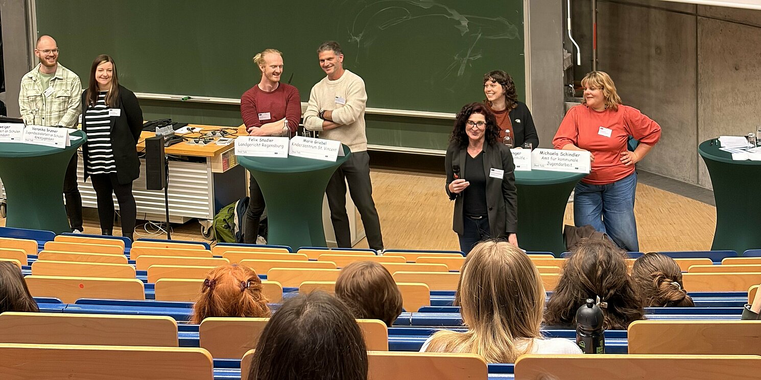 Michaela Schindler vom Amt für kommunale Jugendarbeit der Stadt Regensburg, nannte als zwei der wichtigsten Kompetenzen, die aktuellen Trends zu verstehen (Stichwort „Six Seven“) und im Bereich Medienkompetenz am Ball zu bleiben.