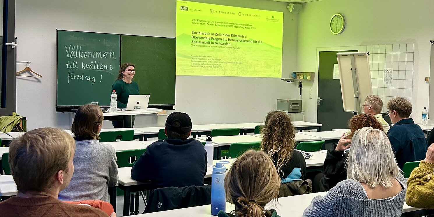 Mit der Frage „Inwieweit beeinträchtigt die menschengemachte Klimakrise die Lebensbedingungen - insbesondere von vulnerablen Gruppen – auch in Deutschland?“ eröffnete die Dozentin der Mid Sweden University den spannenden Abend an der Fakultät Sozial- und Gesundheitswissenschaften.